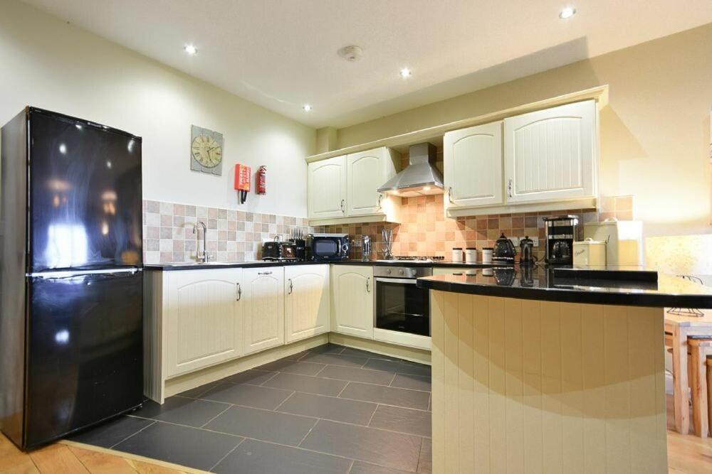 The spacious holiday home features 3 bedrooms, a fully equipped kitchen with a dining area and a dishwasher, and 3 bathrooms. There is also a seating area and a fireplace.