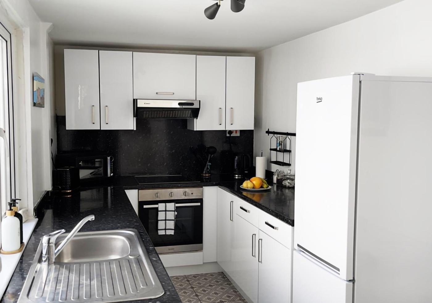 Three-Bedroom House. Guests can make meals in the kitchen that is equipped with a refrigerator, a dishwasher, kitchenware and an oven. The spacious holiday home provides a washing machine, a private entrance, a seating area, a dining area and a TV with streaming services. The unit offers 4 beds.