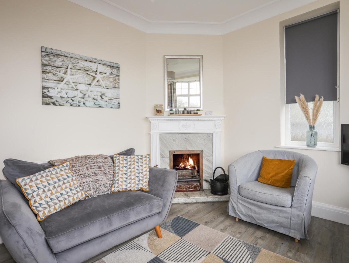 Holiday Home. Guests will have a special experience as the holiday home offers a fireplace. This spacious holiday home consists of 4 bedrooms, a seating area with a sofa and 3 bathrooms with a walk-in shower. Meals can be prepared in the kitchen, which is equipped with a stovetop, a refrigerator, a dishwasher and an oven. The holiday home provides a washing machine, a dining area, a wardrobe, a TV, as well as sea views. The unit offers 6 beds.