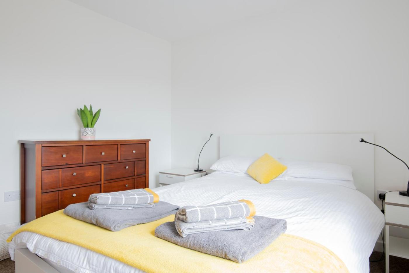 Two-Bedroom Apartment. This spacious apartment features 1 living room, 2 separate bedrooms and 1 bathroom with a bath and free toiletries. The fully equipped kitchen features a stovetop, a refrigerator, a dishwasher and kitchenware. This apartment has a washing machine, a private entrance, a flat-screen TV with streaming services and a terrace. The unit has 3 beds.