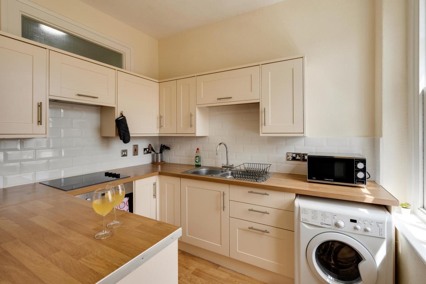 Two-Bedroom Apartment. This spacious apartment includes 1 living room, 2 separate bedrooms and 1 bathroom with a bath and free toiletries. In the well-fitted kitchen, guests will find a stovetop, a refrigerator, an oven and a microwave. The apartment offers a washing machine, a tea and coffee maker, a dining area, a flat-screen TV, as well as garden views. The unit has 3 beds.