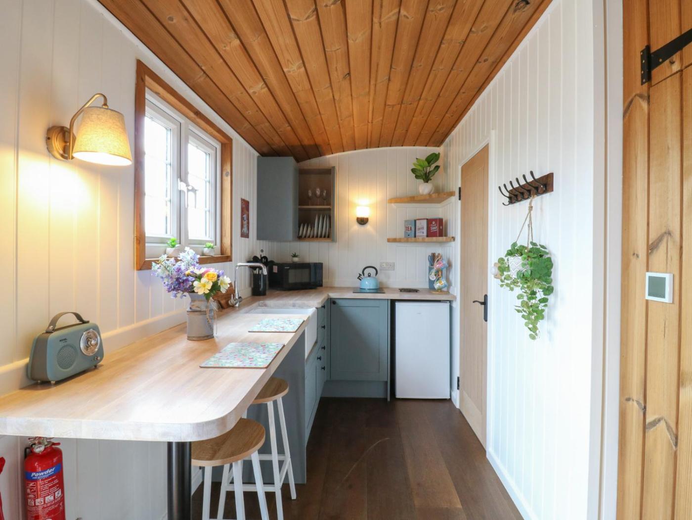 Holiday Home. Guests will have a special experience as this holiday home provides a hot tub. This holiday home is comprised of 1 bedroom, a seating area with a sofa and 1 bathroom with a walk-in shower. The well-equipped kitchen features a stovetop, a refrigerator, a microwave and a toaster. The holiday home offers a dining area, a wardrobe, an electric kettle along with heating. The unit offers 2 beds.