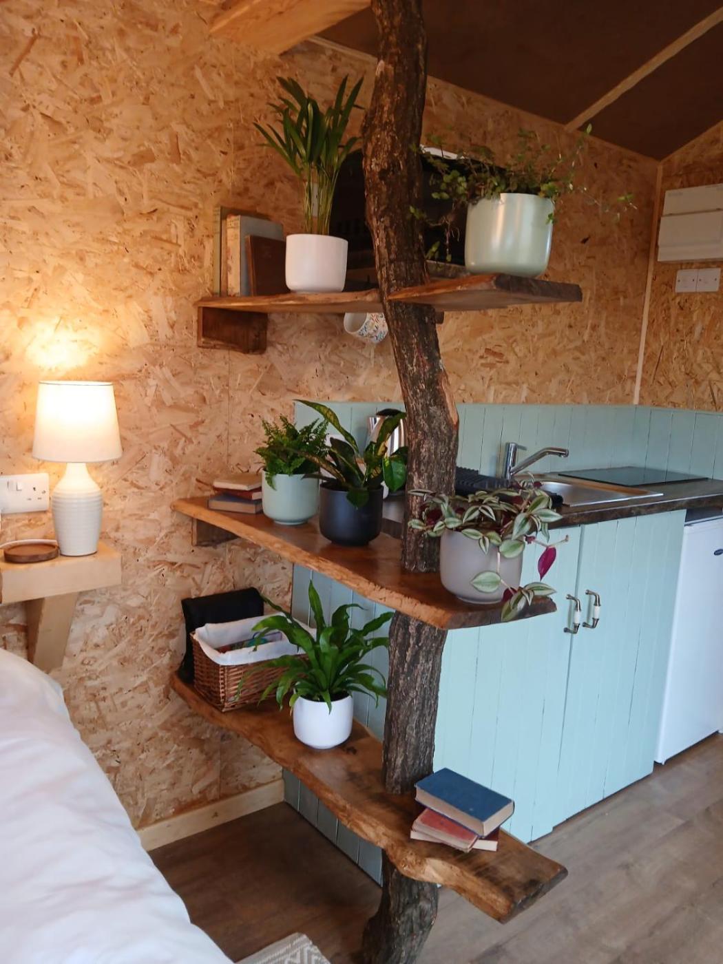 Ivy Shepherds Hut. Guests will have a special experience as the holiday home features a hot tub. This holiday home includes 1 living room, 1 separate bedroom and 1 bathroom with a walk-in shower and free toiletries. Guests will find a stovetop, a refrigerator, kitchenware and a microwave in the fully equipped kitchenette. The holiday home also features a barbecue. The holiday home offers a seating area, a dining area, as well as a balcony and an outdoor dining area. The unit has 1 bed. ;