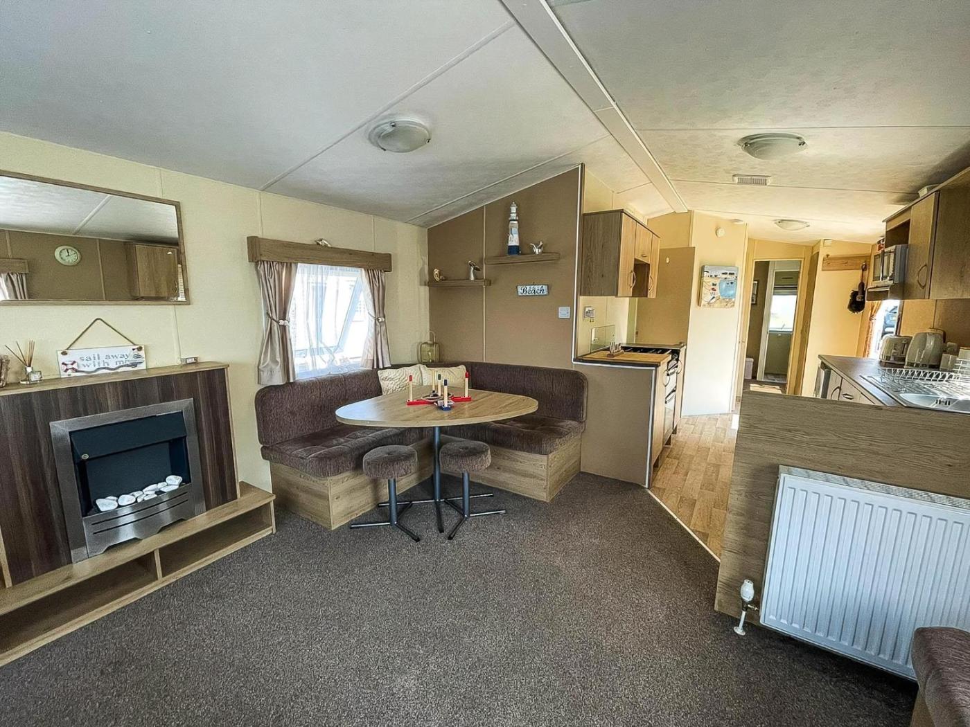 Mobile Home. This mobile home offers a fireplace. Featuring 2 bedrooms and 1 bathroom, this mobile home provides a well-fitted kitchen and a dining area. Guests can make meals in the kitchen that comes with a stovetop, kitchenware, an oven and a microwave. Boasting a patio, this mobile home also features heating and a TV. The unit offers 3 beds.