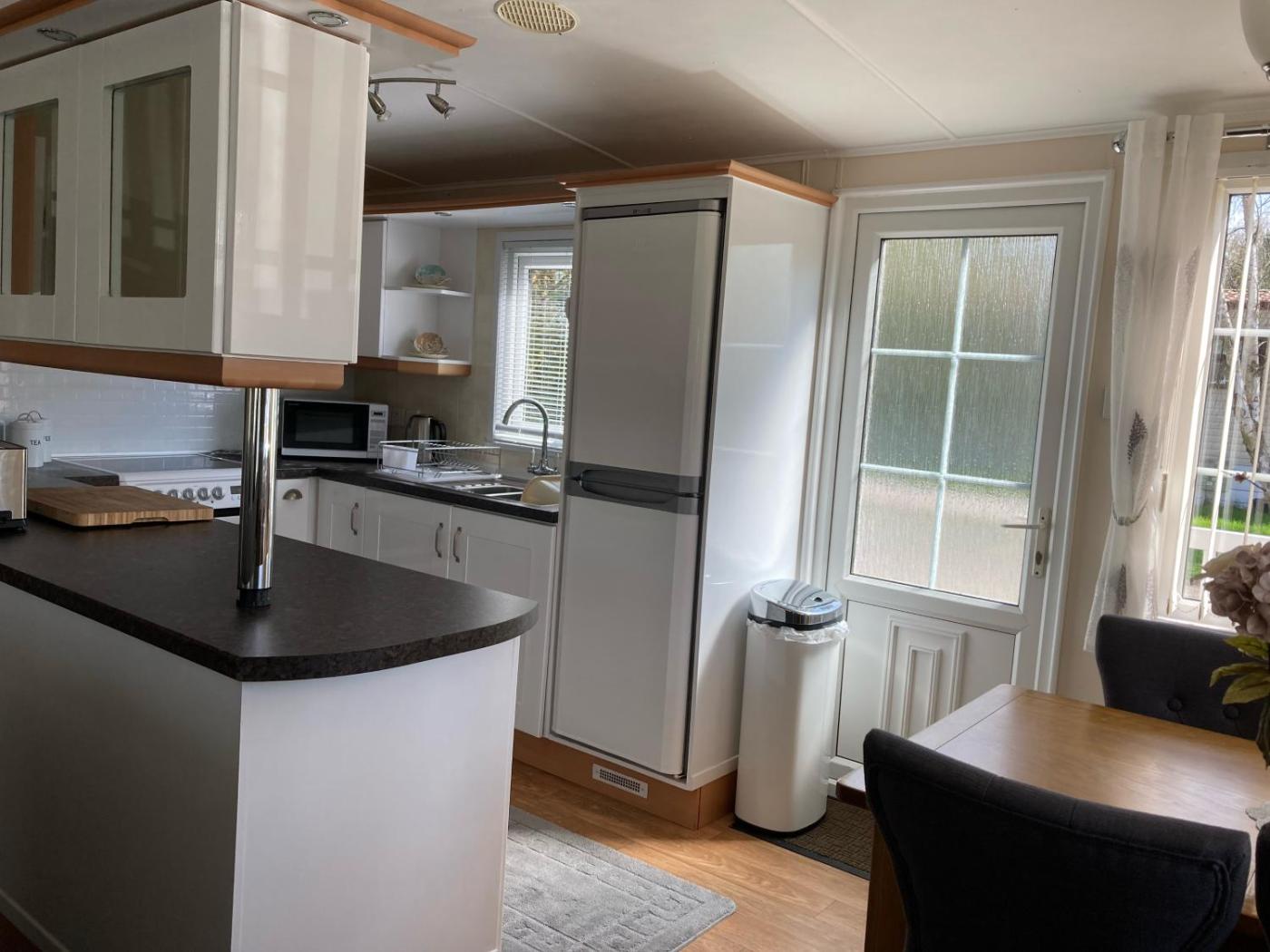 Mobile Home. Guests will have a special experience as the mobile home features a fireplace. Featuring a private entrance, this mobile home also consists of 2 bedrooms, a seating area and 2 bathrooms with a bath and a shower. In the well-fitted kitchen, guests will find a refrigerator, kitchenware, an oven and a microwave. Boasting a balcony with garden views, this mobile home also provides a tea and coffee maker and a flat-screen TV. The unit offers 3 beds.