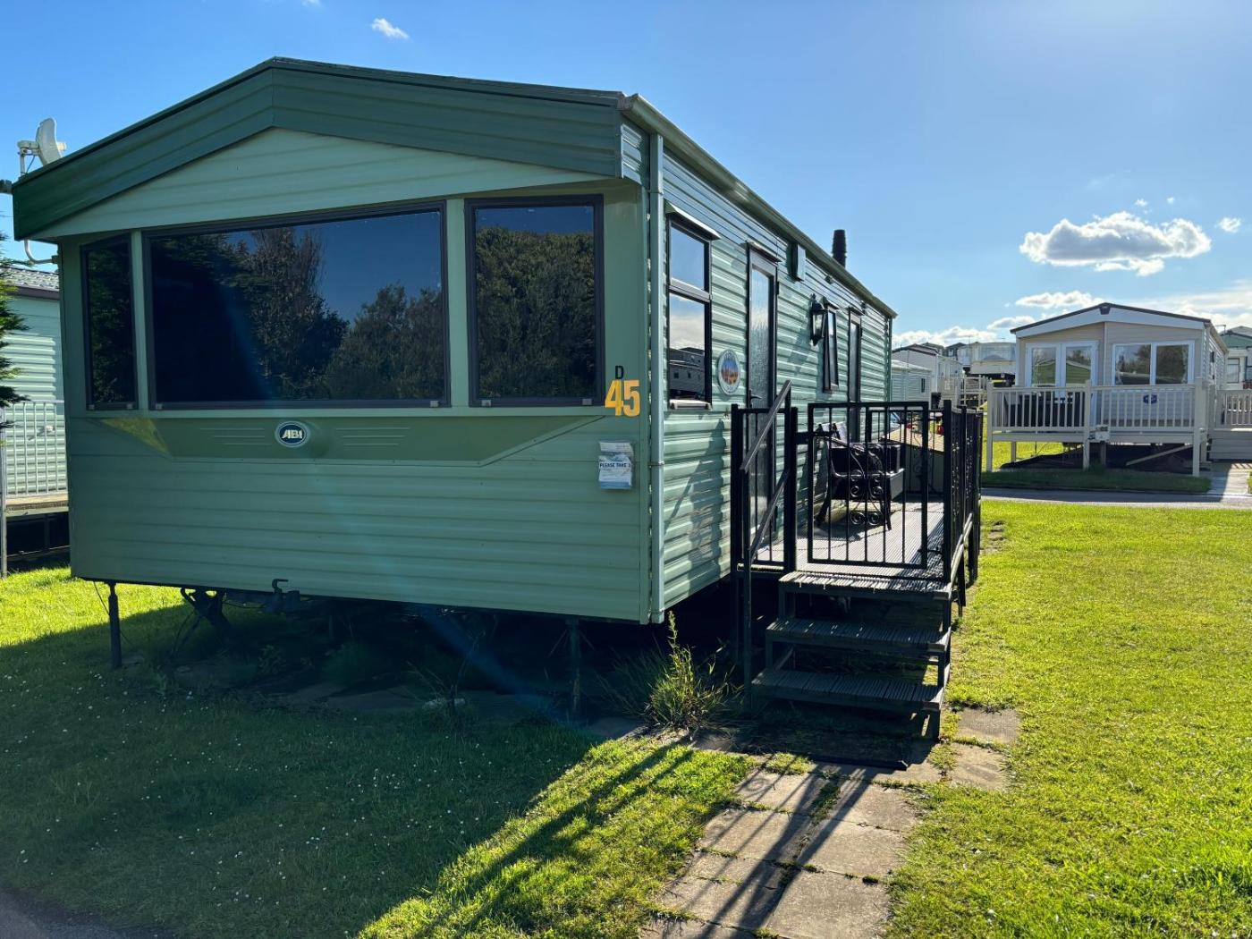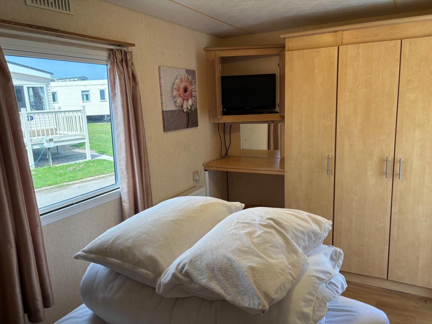 Caravan. This mobile home comes with 2 bedrooms, a seating area and 1 bathroom with a shower and a hairdryer. Boasting a balcony, this mobile home also features a wardrobe, an electric kettle and a flat-screen TV. The unit has 3 beds.
