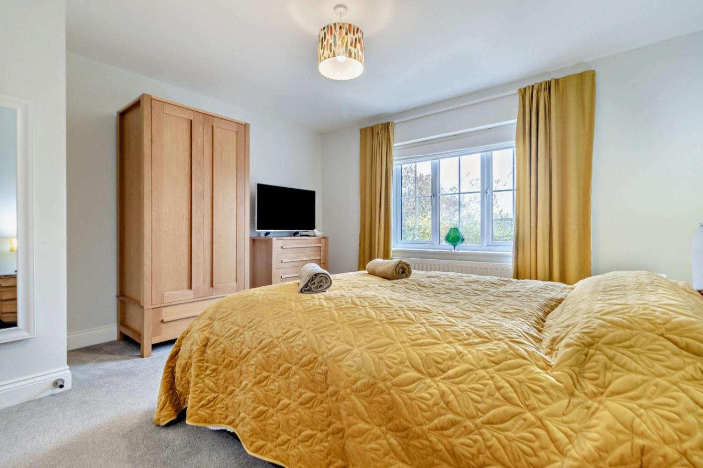 Three-Bedroom House. The holiday home has 2 bedrooms, 1 bathroom and a kitchen. Meals can be prepared in the kitchen, which has a dishwasher, kitchenware and an oven. The holiday home features a washing machine, tumble dryer, a barbecue, a TV, as well as garden views. The unit has 2 beds.
