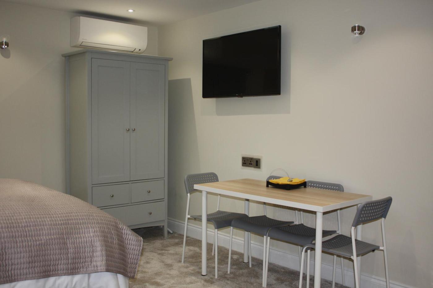 Studio. Featuring free toiletries, this studio includes a private bathroom with a shower and a hairdryer. The fully equipped kitchenette features a refrigerator, a dishwasher, kitchenware and an oven. This studio is air-conditioned and has a seating area with a flat-screen TV, a private entrance, a tea and coffee maker, a dining area, as well as a wardrobe. The unit has 2 beds.