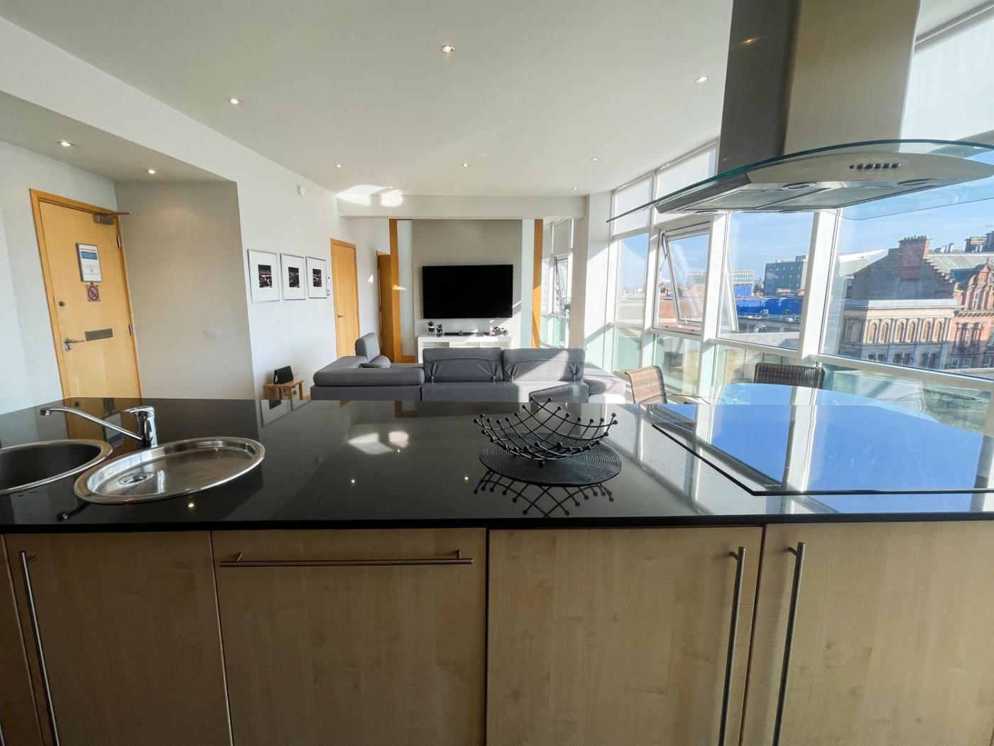 Featuring a spa bath, City Centre 2-Bed Apartment Parking Jacuzzi Bath is located in a central area of Glasgow. It is600 metres from The Glasgow Royal Concert Hall and provides a lift. Providing free WiFi throughout the property, the non-smoking apartment features a hot tub.