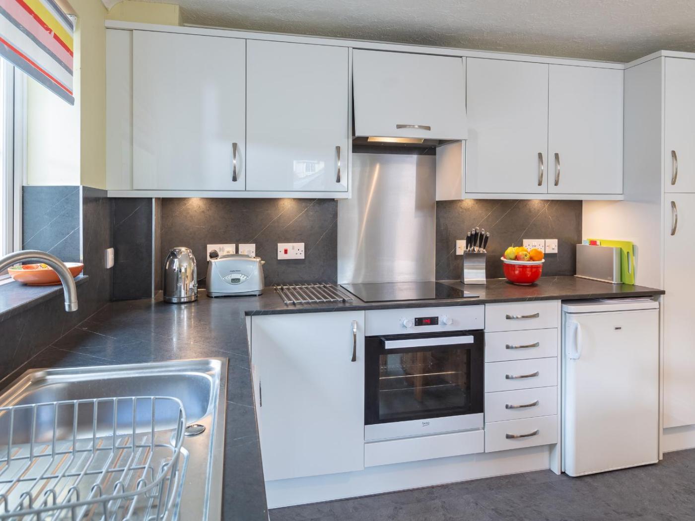 Holiday Home. This holiday home consists of 2 bedrooms, a seating area with a sofa and 1 bathroom with a shower. In the kitchen, guests will find a stovetop, a refrigerator, a dishwasher and an oven. The holiday home is equipped with a washing machine, a dining area, a wardrobe as well as tumble dryer. The unit offers 2 beds.