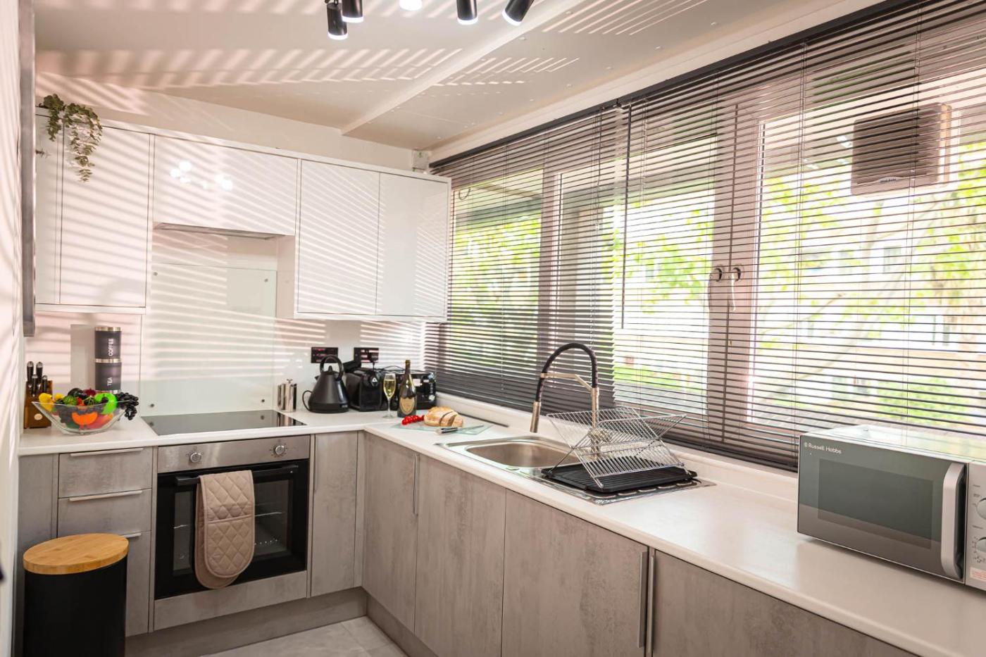 One-Bedroom Apartment. This spacious apartment is comprised of 1 living room, 1 separate bedroom and 1 bathroom with a bath and free toiletries. Guests can make meals in the kitchen that is fitted with a refrigerator, an oven, a microwave and a toaster. The apartment offers a flat-screen TV with streaming services, a washing machine, a tea and coffee maker, a dining area as well as garden views. The unit offers 2 beds.
