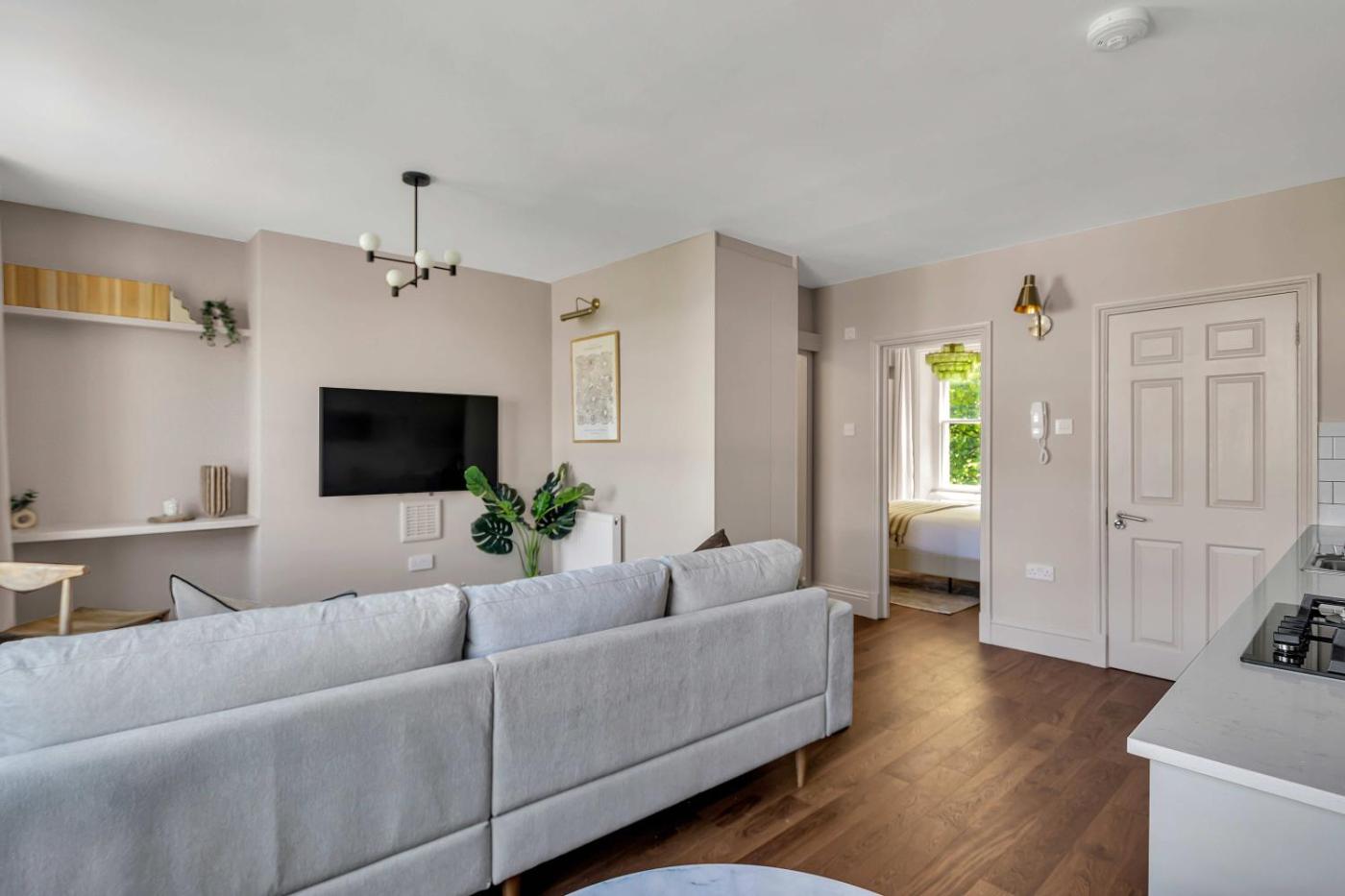 Lower Ground Standard Apartment. Featuring a private entrance, this apartment consists of 1 living room, 1 separate bedroom and 2 bathrooms with a walk-in shower and a hairdryer. The fully equipped kitchen has a stovetop, a refrigerator, a dishwasher and kitchenware. The apartment features parquet floors, a seating area with a flat-screen TV with streaming services, a washing machine, a tea and coffee maker, as well as a dining area. The unit offers 1 bed. ;