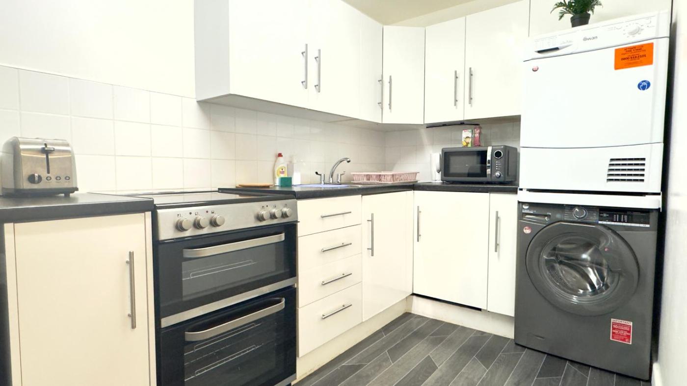 Two-Bedroom Apartment. Boasting a private entrance, this air-conditioned apartment includes 1 living room, 2 separate bedrooms and 1 bathroom with a bath and a hairdryer. In the kitchen, guests will find a stovetop, a refrigerator, kitchenware and an oven. This apartment has a washing machine, a seating area, a flat-screen TV with streaming services and a patio. The unit has 3 beds.