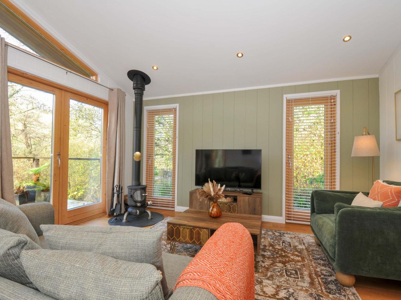 Holiday Home. This holiday home features a hot tub and a fireplace. This holiday home features 2 bedrooms, a seating area with a sofa and 2 bathrooms with a walk-in shower. The well-fitted kitchen has a stovetop, a refrigerator, a dishwasher and an oven. The holiday home features a washing machine, a dining area, a wardrobe, an electric kettle, as well as a TV. The unit has 3 beds.