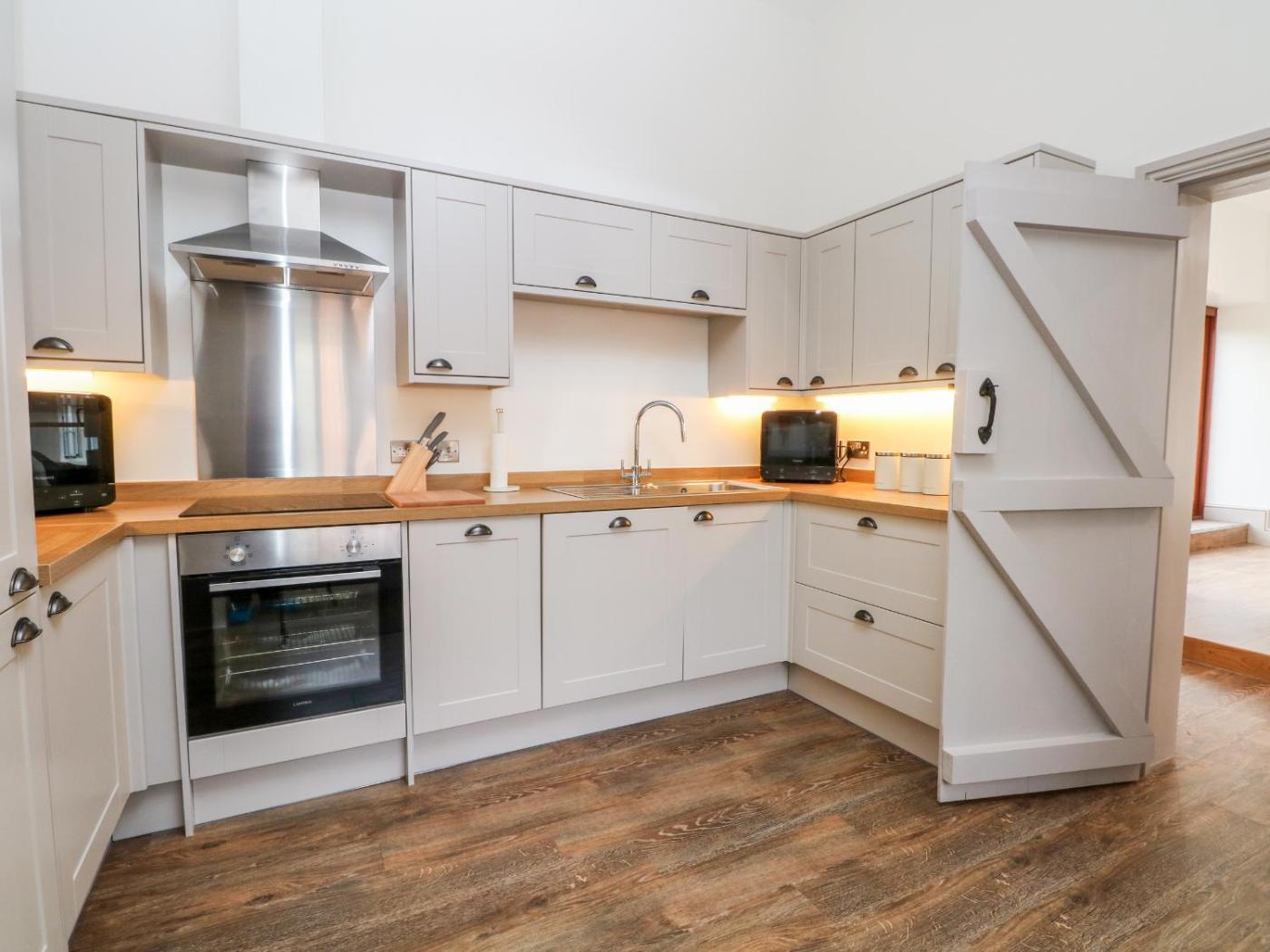 Holiday Home. The spacious holiday home provides a seating area and a dining area, as well as a private bathroom featuring a walk-in shower. Guests can make meals in the kitchen that comes with a stovetop, a refrigerator, a dishwasher and an oven. The holiday home features a wardrobe, an electric kettle, a sofa, heating, as well as a TV.