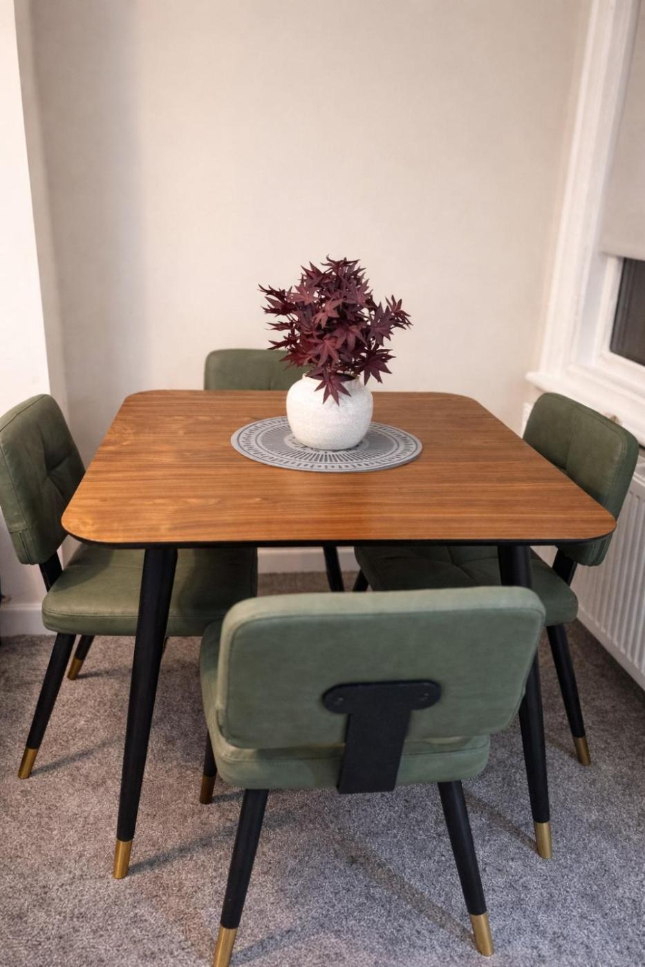 Three-Bedroom House. The fireplace is a top feature of this holiday home. Meals can be prepared in the kitchen, which features a stovetop, a refrigerator, a dishwasher and kitchenware. The holiday home features a flat-screen TV with streaming services, a washing machine, a private entrance, a tea and coffee maker as well as garden views. The unit has 1 bed.