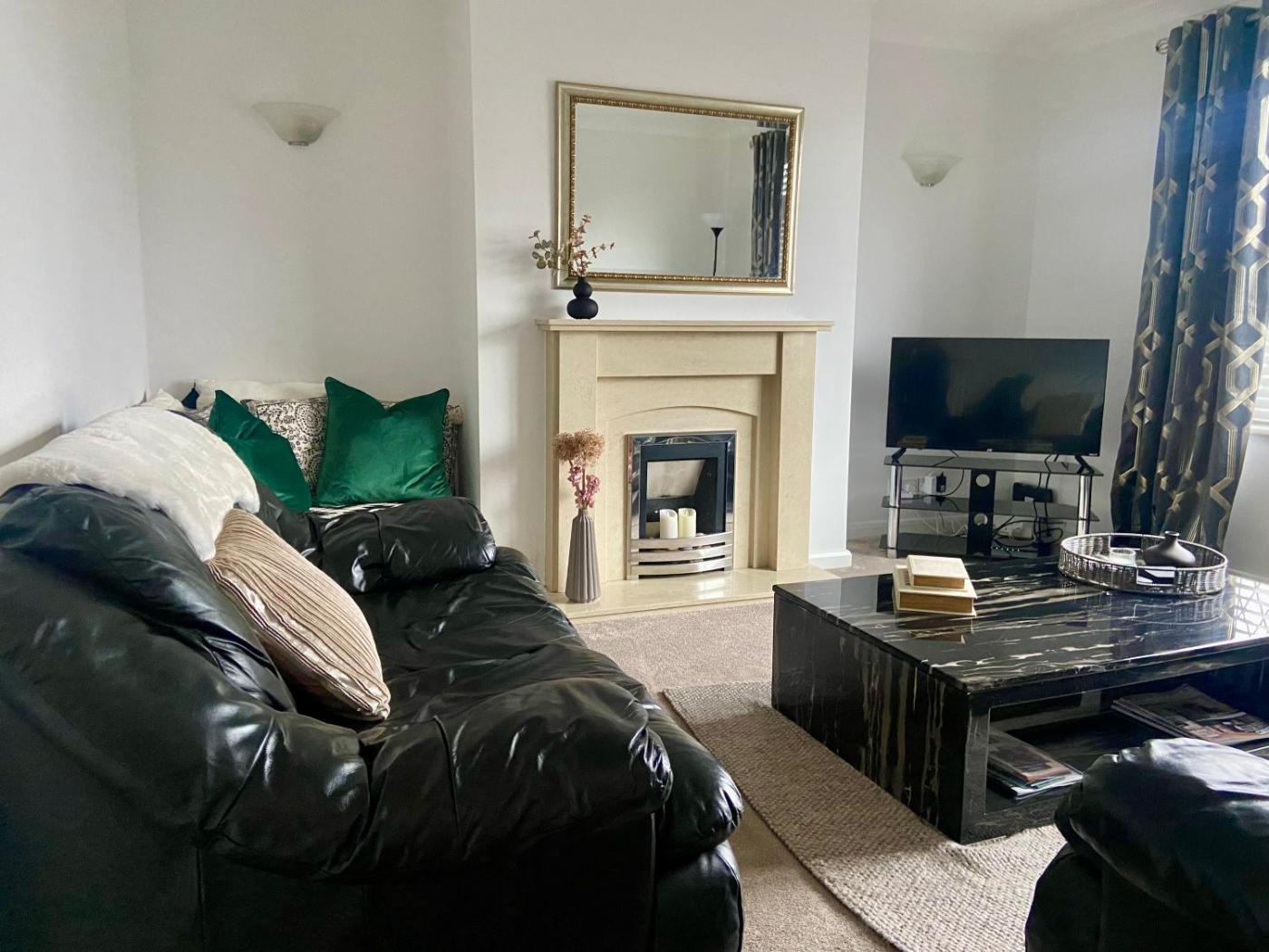 Three-Bedroom House. This spacious holiday home features 2 living rooms, 3 separate bedrooms and 1 bathroom with a bath and free toiletries. Guests can make meals in the kitchen that has a stovetop, a refrigerator, a dishwasher and kitchenware. The holiday home features a flat-screen TV with streaming services, a washing machine, a private entrance, a tea and coffee maker as well as garden views. The unit has 4 beds.