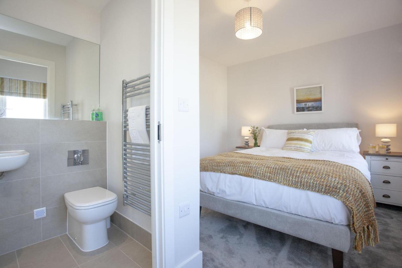 Two-Bedroom House. The hot tub is the standout feature of this holiday home. Boasting a private entrance, this holiday home also features 1 living room, 2 separate bedrooms and 2 bathrooms with a bath. Meals can be prepared in the kitchen, which features a stovetop, a refrigerator, a dishwasher and kitchenware. The holiday home features a washing machine, a tea and coffee maker, a seating area, a flat-screen TV with streaming services, as well as garden views. The unit has 3 beds.