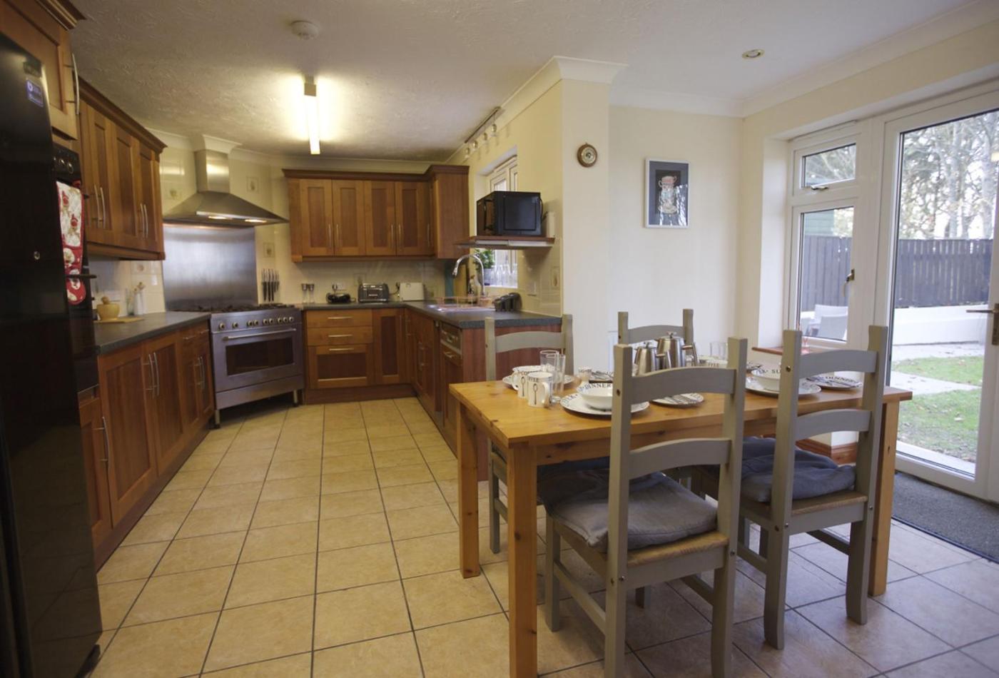 Holiday Home. The fireplace is the standout feature of this holiday home. The holiday home has 5 bedrooms, 4 bathrooms and a kitchen. Guests will find a dishwasher, an oven and a microwave in the kitchen. The holiday home also includes a barbecue. Boasting outdoor furniture, this holiday home also features a washing machine, a coffee machine and a TV. The unit has 7 beds.
