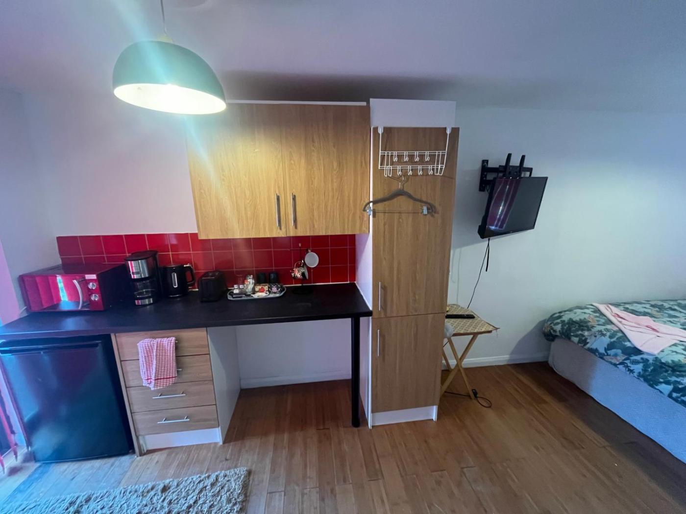 Double Room. The double room features a private bathroom, a private entrance, a tea and coffee maker, as well as a seating area with a flat-screen TV. The well-fitted kitchenette has a refrigerator, kitchenware, a microwave and a toaster. Among the room amenities are a dining area, a wardrobe, a tiled floor as well as a patio and a quiet street view. The unit offers 1 bed.