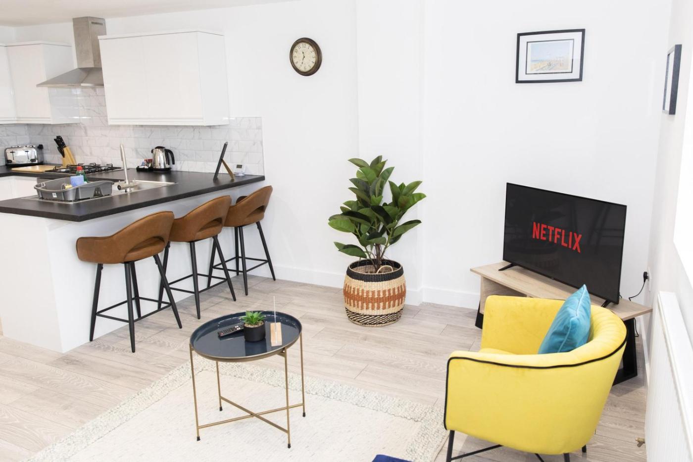 Ocean Side with Free Parking By My Getaways is located in Peacehaven, 10 km from Brighton Pier, 11 km from Brighton Dome, and 11 km from Victoria Gardens. The property is around 11 km from Churchill Square Shopping Centre, 11 km from The Brighton Centre and 12 km from The Royal Pavilion. Free WiFi is available throughout the property and Brighton Marina is 7.6 km away.