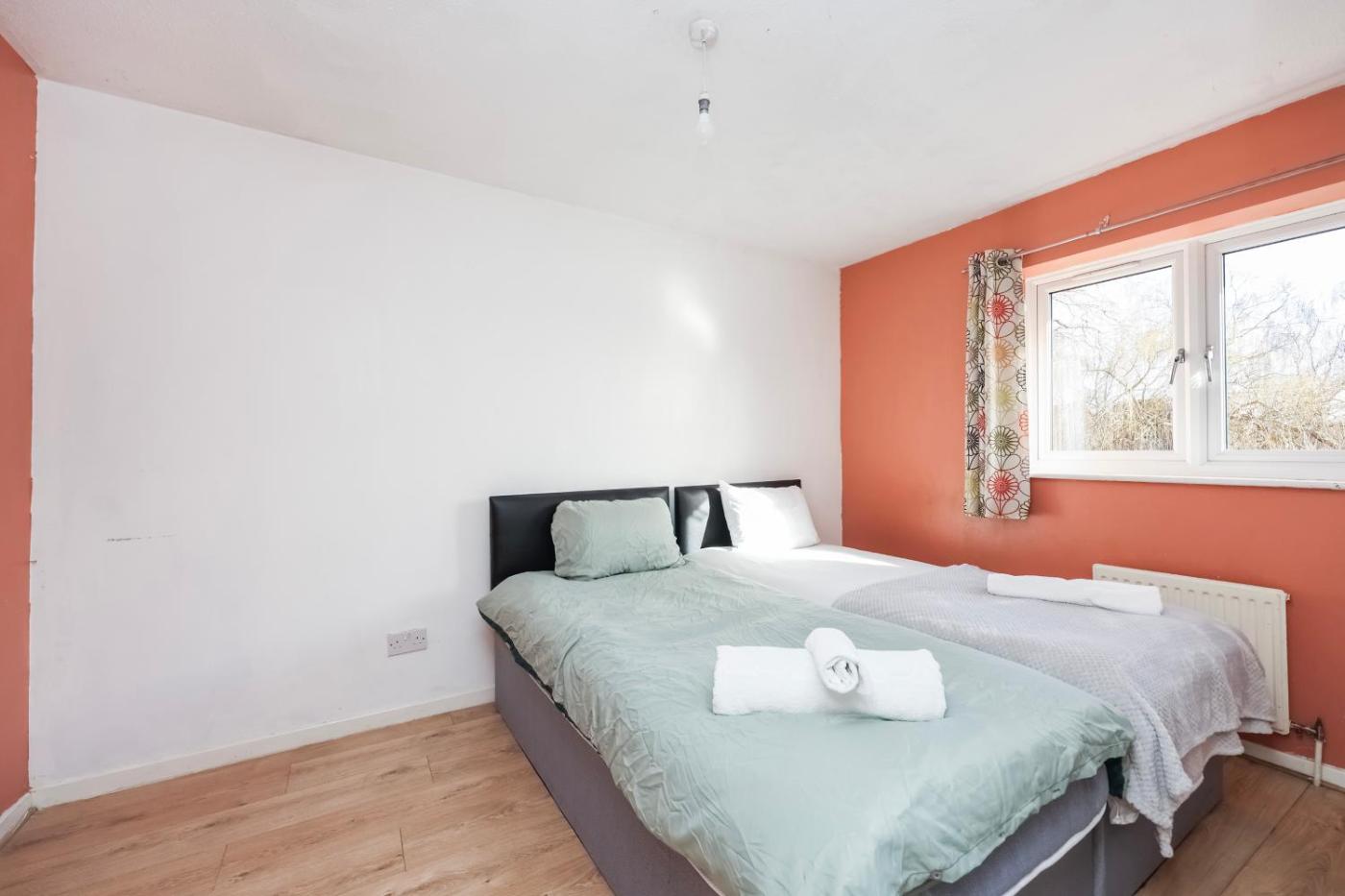Located in Thamesmead and only 10 km from O2 Arena, Riverview Larger Groups Canary Wharf take Boat to Greenwich 02 provides accommodation with garden views, free WiFi and free private parking. The property is around 10 km from Blackheath station, 10 km from Greenwich Park and 13 km from Canary Wharf Underground Station. Docklands is 14 km from the apartment and West Ham is 14 km away.
