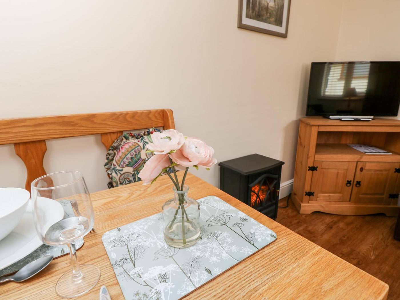 Holiday Home. This holiday homes standout feature is the fireplace. This holiday home includes 1 bedroom, a seating area with a sofa and 1 bathroom with a walk-in shower. In the kitchen, guests will find a stovetop, a refrigerator, an oven and a microwave. The holiday home offers a washing machine, a dining area, a wardrobe, an electric kettle and a TV. The unit has 1 bed.