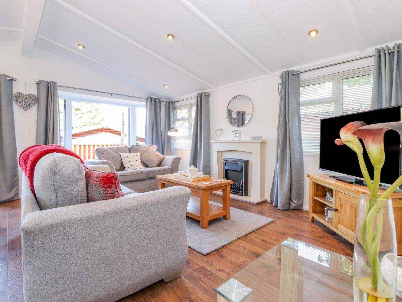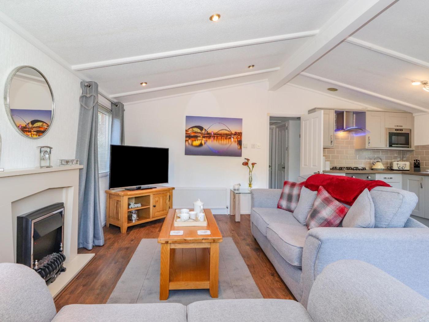 Holiday Home. The fireplace is the standout feature of this holiday home. This holiday home comes with a kitchen, a seating area, 2 separate bedrooms and 1 bathroom with a shower and a hairdryer. The fully equipped kitchen has a stovetop, a refrigerator, a dishwasher and an oven. The holiday home features a dining area, a wardrobe, an electric kettle, a sofa and a TV. The unit has 3 beds.