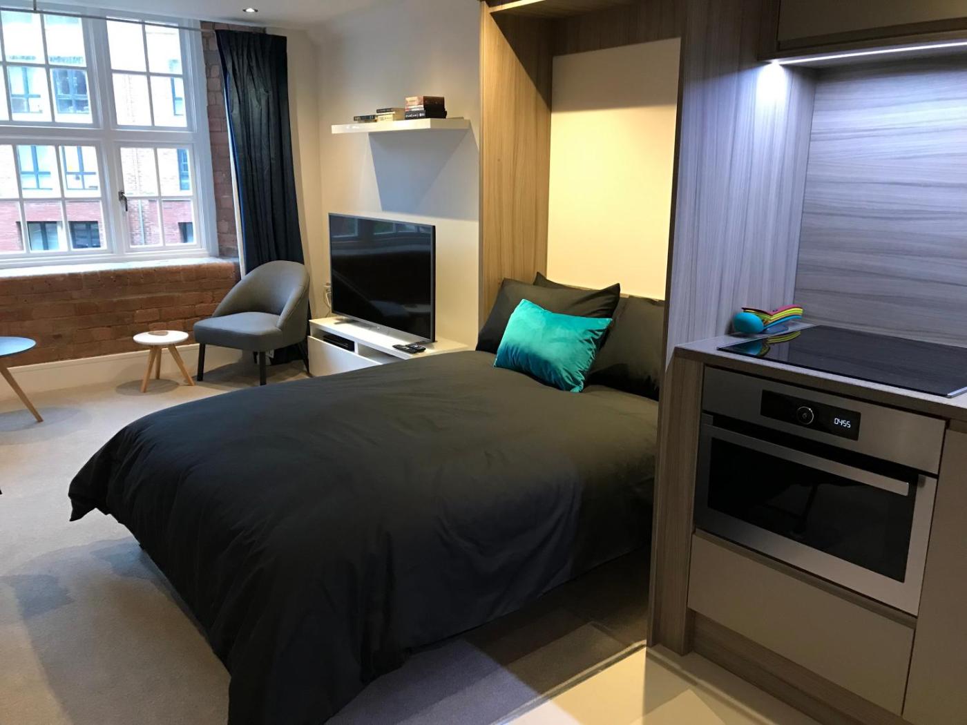 Studio Apartment. This apartment comes with 1 living room, 1 separate bedroom and 1 bathroom with a walk-in shower and a hairdryer. Meals can be prepared in the well-fitted kitchen, which features a stovetop, a refrigerator, an oven and a microwave. The apartment features a flat-screen TV with streaming services, a washing machine, a seating area, a dining area as well as river views. The unit has 2 beds.