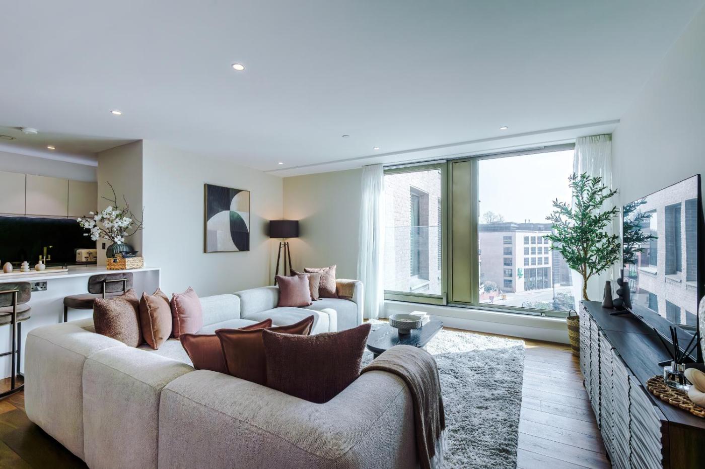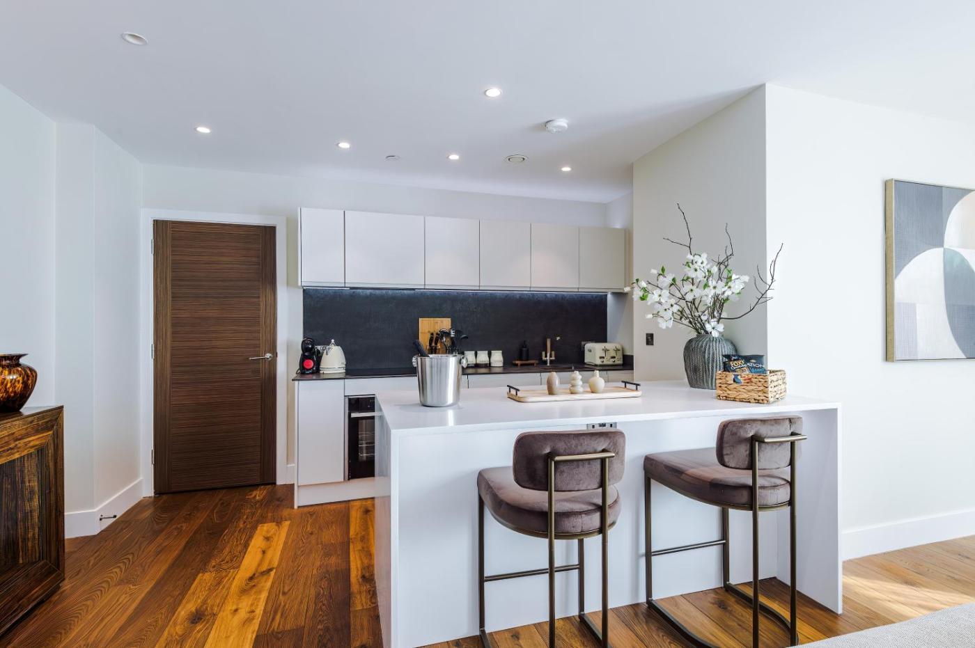 Two-Bedroom Apartment. This spacious apartment comes with 1 living room, 2 separate bedrooms and 2 bathrooms with a walk-in shower and free toiletries. In the fully equipped kitchen, guests will find a stovetop, a refrigerator, a dishwasher and kitchenware. The apartment features a washing machine, a private entrance, a tea and coffee maker, a flat-screen TV with streaming services, as well as city views. The unit has 2 beds.